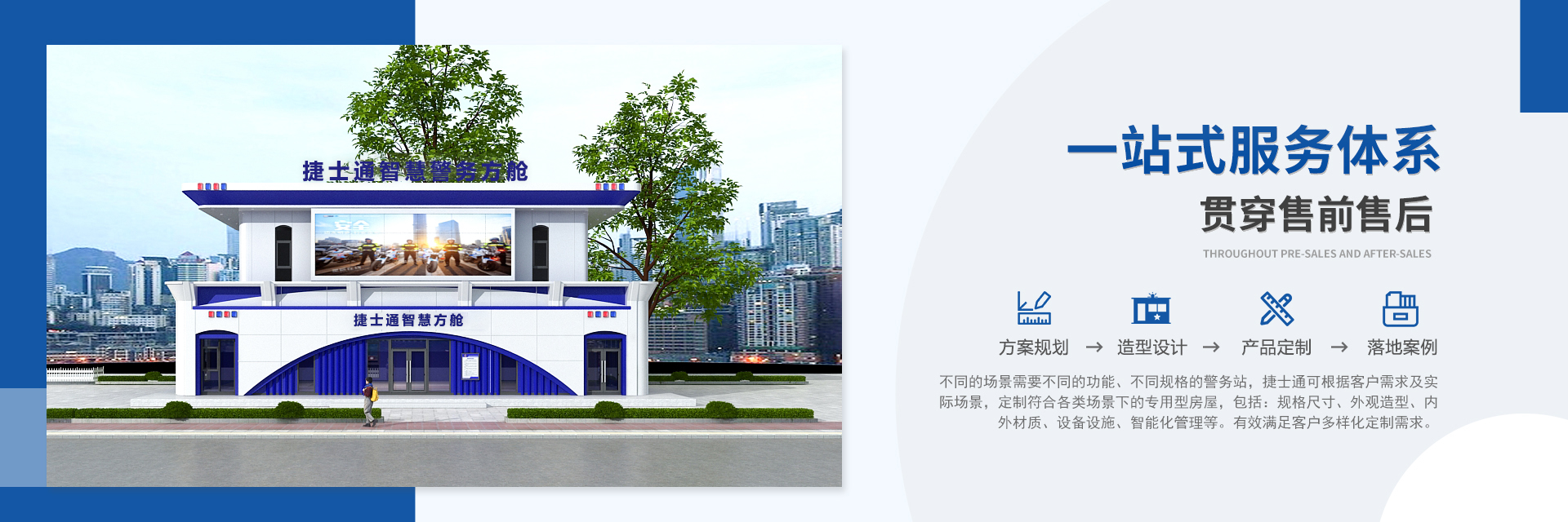 捷士通(天津)房屋智能制造有限公司是集數(shù)字化設(shè)計(jì)、智能制造、營(yíng)銷(xiāo)、服務(wù)的智慧警務(wù)工作站一體化解決方案提供商。公司成立于2006年,通過(guò)持續(xù)的行業(yè)經(jīng)驗(yàn)積累和技術(shù)創(chuàng)新,形成以軍警、環(huán)衛(wèi)、商業(yè)、文旅、鄉(xiāng)村振興五大領(lǐng)域,不斷開(kāi)拓智慧警務(wù)工作站、交通警務(wù)站、移動(dòng)警務(wù)室、警務(wù)檢查站、綜合執(zhí)法站等業(yè)務(wù)板塊,通過(guò)了1S09001體系認(rèn)證,擁有強(qiáng)大的鋼結(jié)構(gòu)裝配式房屋技術(shù)團(tuán)隊(duì),不斷進(jìn)行創(chuàng)新驅(qū)動(dòng)和轉(zhuǎn)型升級(jí),在大型移動(dòng)房屋領(lǐng)域擁有60多項(xiàng)關(guān)鍵技術(shù)。公司堅(jiān)持低碳發(fā)展,智造未來(lái)的理念。通過(guò)數(shù)字化設(shè)計(jì)實(shí)現(xiàn)定制化需求,裝配式達(dá)到國(guó)家AAA級(jí)標(biāo)準(zhǔn), 發(fā)展成為AAA級(jí)信用企業(yè),天津市雛鷹企業(yè),國(guó)家高新技術(shù)企業(yè)。公司以客戶(hù)為中心,為客戶(hù)提供“捷士通式服務(wù)體系”,成為全國(guó)智慧警務(wù)工作站一體化解決方案提供商。